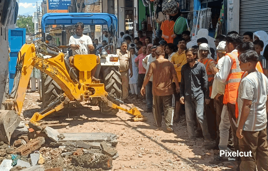 न्यूरिया में अतिक्रमण पर प्रशासन की बड़ी कार्रवाई, जेसीबी से हटाए गए चबूतरे