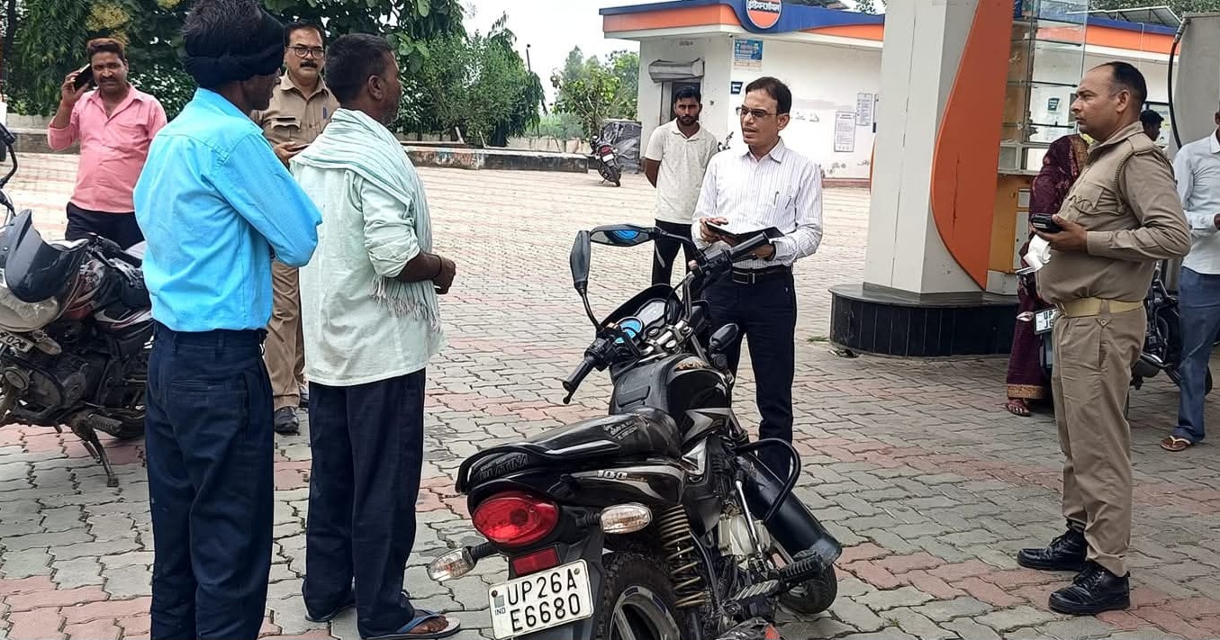 पेट्रोल पंप पर चेकिंग अभियान के दौरान कार्रवाई करते एआरटीओ दल।