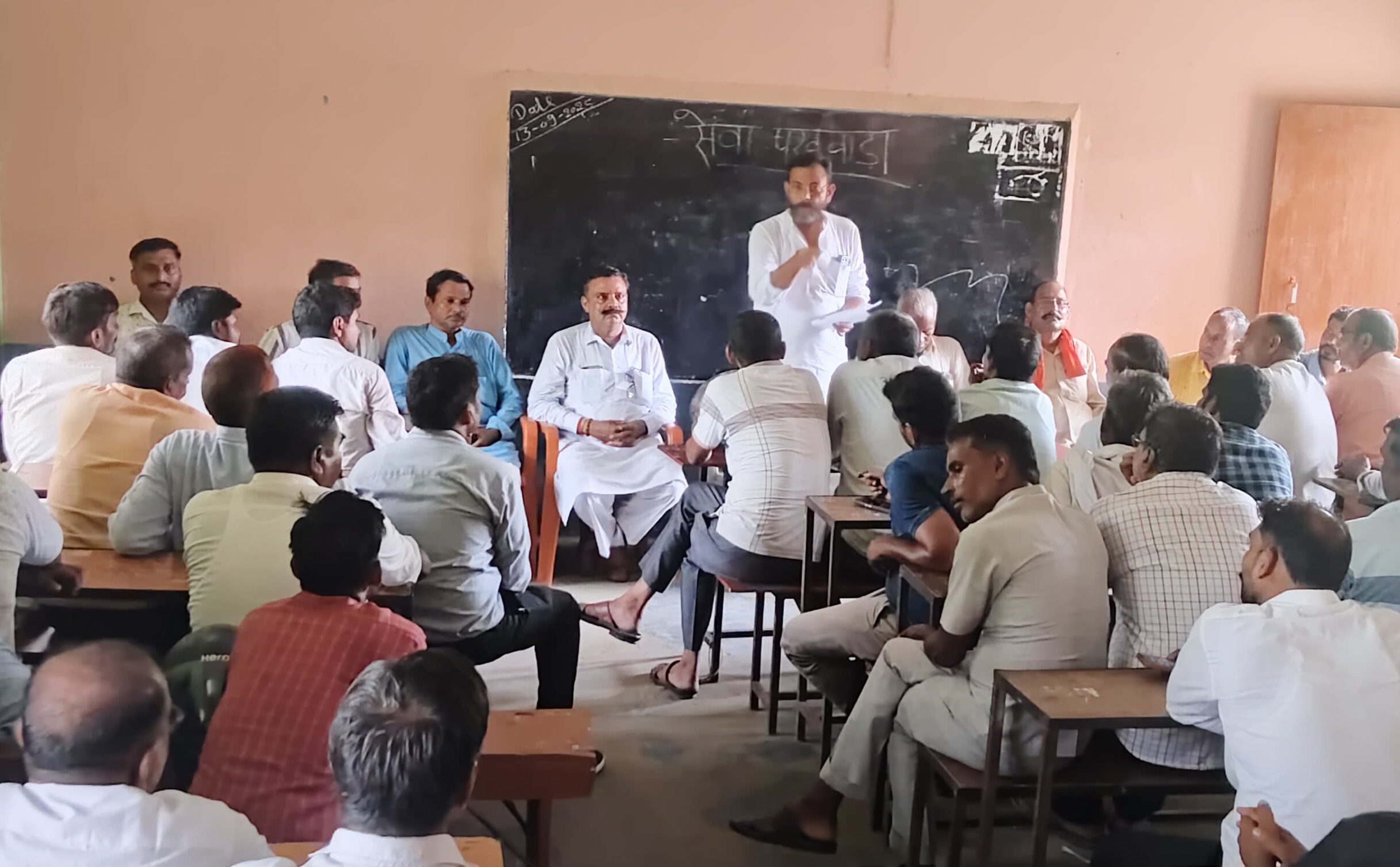 सेवा पखवाड़ा की तैयारियों को लेकर बैठक में मौजूद पदाधिकारी व कार्यकर्ता