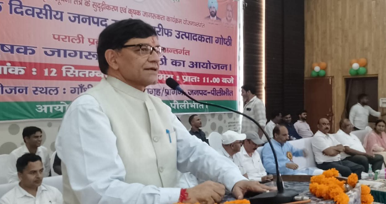 डीएम ज्ञानेन्द्र सिंह ने किसानों से समन्वित कृषि प्रणाली (इंटीग्रेटेड फार्मिंग) अपनाने की अपील की। उन्होंने कहा कि प्रधानमंत्री का लक्ष्य भारत को वर्ष 2047 तक विकसित राष्ट्र बनाने का है, जिसके लिए उत्तर प्रदेश को विशेष योगदान देना होगा। उन्होंने किसानों को मुर्गी पालन अपनाने के लिए भी प्रेरित किया ताकि अंडा उत्पादन में आत्मनिर्भरता लाई जा सके।कार्यक्रम में मणि एग्रो हब प्रा. लि., लखनऊ के डॉ. अय्यूब ने मोती की खेती पर जानकारी दी। उन्होंने बताया कि पीलीभीत के 10 किसानों के यहां प्रोजेक्ट शुरू किए जा रहे हैं और यह खेती पारंपरिक खेती की तुलना में चार गुना अधिक लाभ देती है।उप कृषि निदेशक राम मिलन सिंह परिहार ने फार्मर रजिस्ट्री, डिजिटल क्रॉप सर्वे, प्रमाणित बीजों पर अनुदान और कृषि यंत्रीकरण योजना पर विस्तृत जानकारी दी। वहीं कृषि विज्ञान केन्द्र टांडा विजैसी के वरिष्ठ वैज्ञानिक डॉ. एस.एस. ढाका ने कम लागत में अधिक उत्पादन की वैज्ञानिक तकनीकें बताईं।जिला कृषि अधिकारी नरेन्द्र पाल ने उर्वरक उपलब्धता, कृषि यंत्रों पर अनुदान, फसल बीमा, रबी फसलों की उत्पादकता, सिंचाई विधियां और पादप रोग प्रबंधन पर किसानों को मार्गदर्शन दिया।गोष्ठी में जिला गन्ना अधिकारी खुशीराम, अग्रणी जिला प्रबंधक राज कुमार सेठ, उप मुख्य पशु चिकित्सा अधिकारी डॉ. वी.के. गौतम, खंड विकास अधिकारी, भूमि संरक्षण अधिकारी और उद्यान निरीक्षक सहित कई अधिकारी उपस्थित रहे।