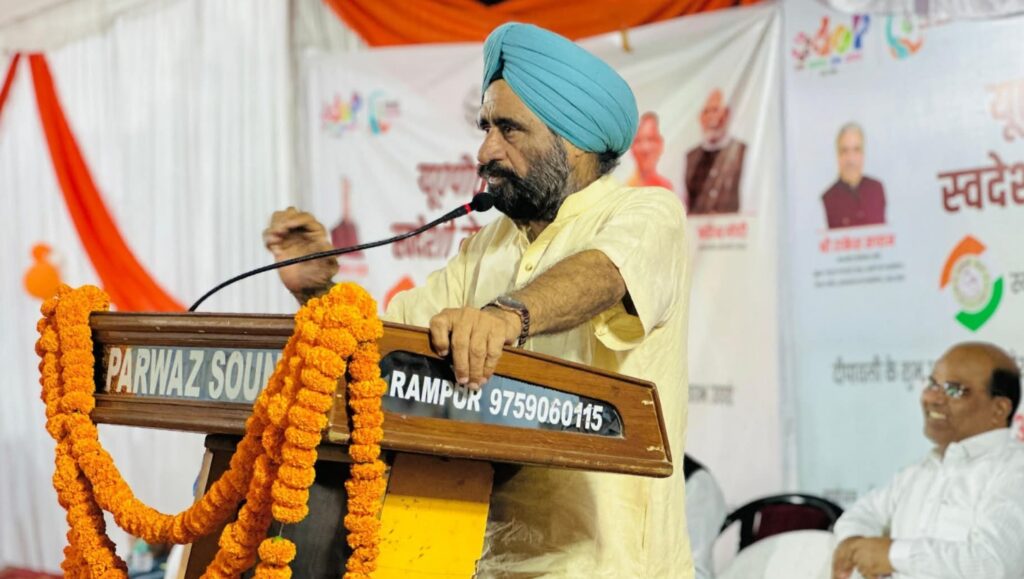 रामपुर। यू.पी. इंटरनेशनल ट्रेड शो 2025 के अंतर्गत औद्योगिक आस्थान पार्क, रोशनबाग (रामपुर) में आयोजित स्वदेशी मेले में रविवार को प्रदेश सरकार के कृषि, कृषि शिक्षा एवं अनुसंधान विभाग के राज्यमंत्री बलदेव सिंह ओलख ने प्रदर्शनी का अवलोकन किया। उन्होंने विभिन्न स्टॉलों पर लगाए गए स्थानीय व कुटीर उद्योगों के उत्पादों की जानकारी ली और उद्यमियों का उत्साहवर्धन किया।