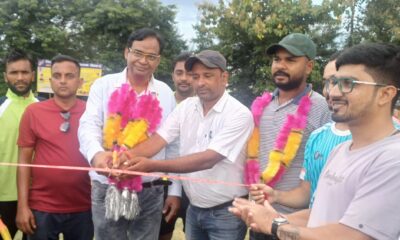 डॉ. दीपक गंगवार मैदान में फीता काटकर नेताजी सुभाष कप-2025 सेमीफाइनल की शुरुआत करते हुए
