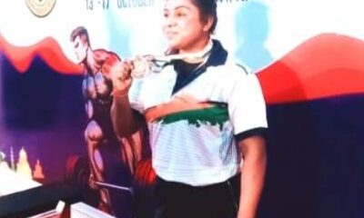 कांस्य पदक के साथ ऑल इंडिया पुलिस वेट/पॉवर लिफ्टिंग प्रतियोगिता में चमकीं थाना न्यूरिया मे तैनात आरक्षी उर्वशी।फोटो सोशल मीडिया