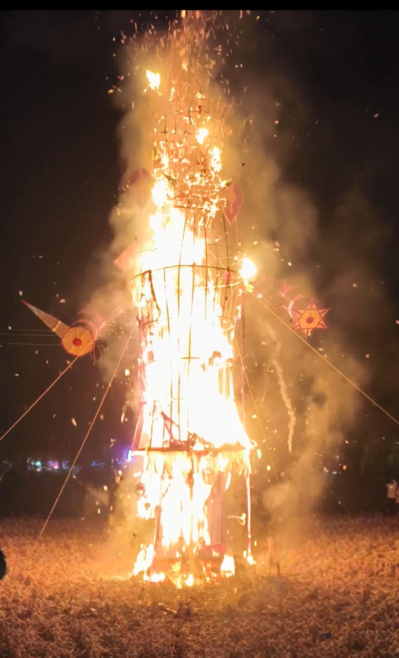 रावण दहन देखने के लिए आसपास के गांवों से बड़ी संख्या में श्रद्धालु और ग्रामीण एकत्र हुए।सुरक्षा व्यवस्था के लिए थाना अध्यक्ष सुभाष कुमार मावी के निर्देशन में मेले स्थल पर अस्थायी पुलिस चौकी स्थापित की गई थी। पुलिस की मौजूदगी में पूरा कार्यक्रम शांतिपूर्ण और सफलतापूर्वक संपन्न हुआ।रावण के पुतले को अग्नि देते ही ‘जय श्रीराम’ के जयघोष से पूरा वातावरण गूंज उठा। ग्रामीणों के चेहरों पर भक्ति और उल्लास का अद्भुत संगम देखने को मिला। इस अवसर पर श्रीरामलीला मेला समिति के सदस्य सहित क्षेत्रभर से बड़ी संख्या में श्रद्धालु मौजूद रहे।